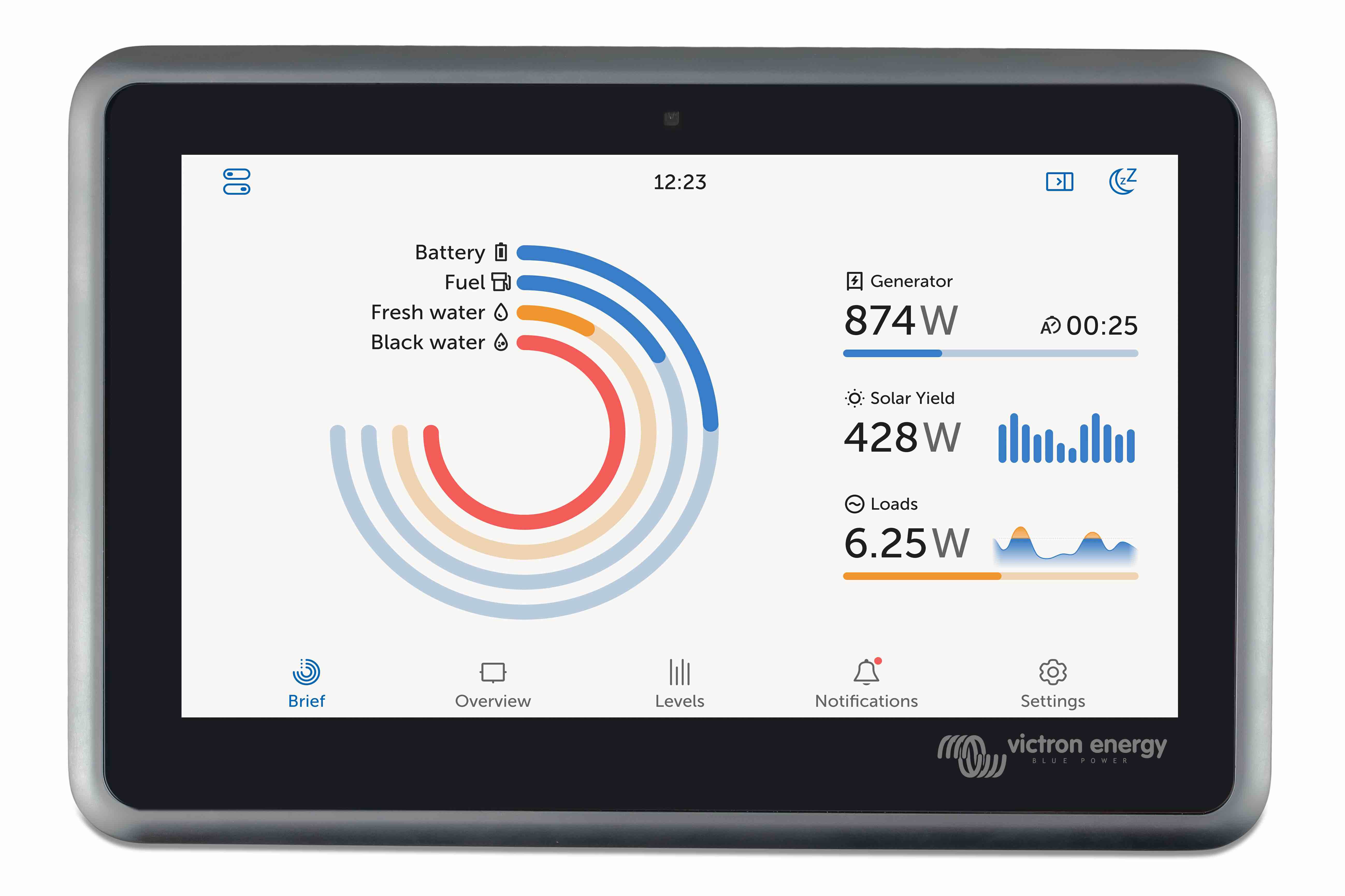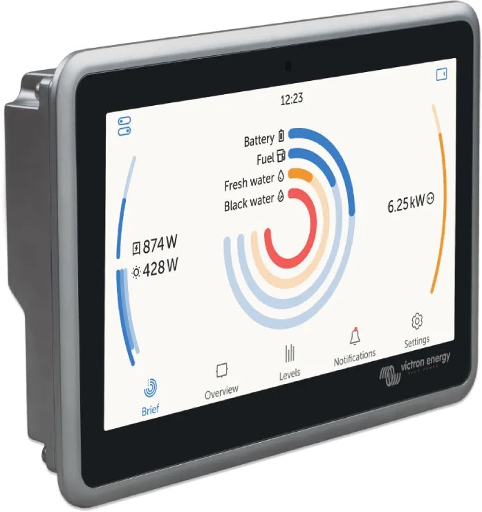 Mit dem neuen Ekrano GX haben Sie im Handumdrehen den Überblick über Ihr System und können Einstellungen vornehmen. Sein superschlankes, wassergeschütztes 7-Zoll-Design, das von oben montierbare Setup und seine einfache Installation bringen eine Menge Flexibilität bei der Erstellung eines klaren und sauberen Armaturenbretts.